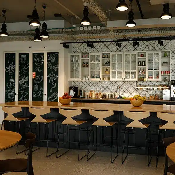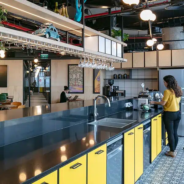 פרויקט בלב תל אביב, בבניין החדש WE tlv וכולל 3 קומות משרדים, מטבחונים וחדרי ישיבות וקומת לובי LOUNGE מפוארת בקומת הקרקע